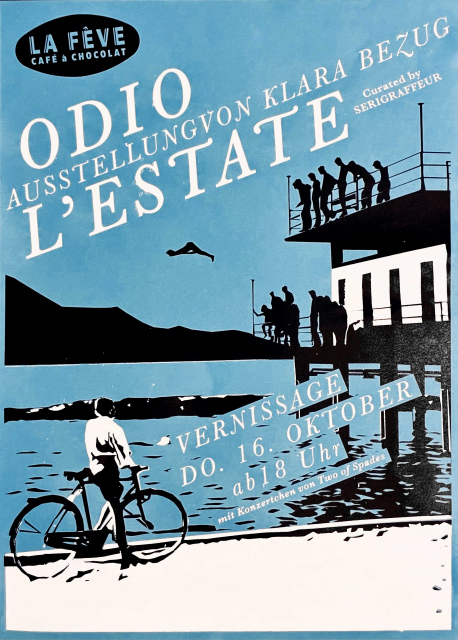 Wir freuen uns sehr, Sie zu unserer herbstlichen Ausstellung einzuladen – eine Gelegenheit, den Sommer vielleicht noch ein wenig zu verlängern: mit nostalgischen Bildern von Stränden und Sonne, die uns Klara Bezug – die Künstlerpersona der italienischen Fotografin Gaia Marturano – präsentiert. In dieser Ausstellung zeigt sie aktuelle Siebdruck-Editionen sowie eine kleine retrospektive Auswahl ihrer Fotomontagen. Klara ist in Berlin vor allem für ihre surrealen Fotomontagen bekannt, insbesondere für die Serie „DDR dreamin’“, in der sie alte Postkartenmotive neu miteinander verwebt.